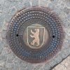 Berlin:Städtepartnerschaft Penzberg: Vor dem Berliner Rathaus, oben auf Bayerischen Rauten die Bergmannswerkzeuge des Pechkohlebergbaus. Das Lamm mit der Kreuzfahne steht für Johannes den Täufer, da Penzberg aus Sankt Johannisrain entstand, welches durch Zuzug der Bergleute beträchtlich wuchs.